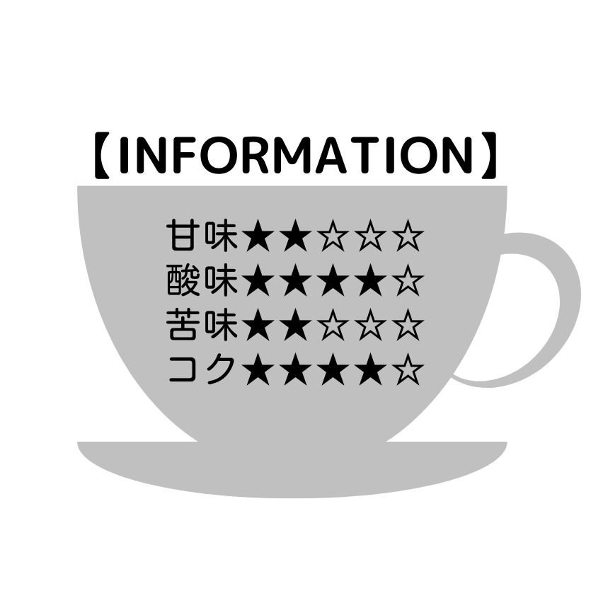 酸味を中心としたバランスのよい爽やかな印象のコーヒー豆です。コクがありながらも、柑橘系のスッキリとした酸味とフルーティな香りが特徴でとても飲みやすく仕上がっています。