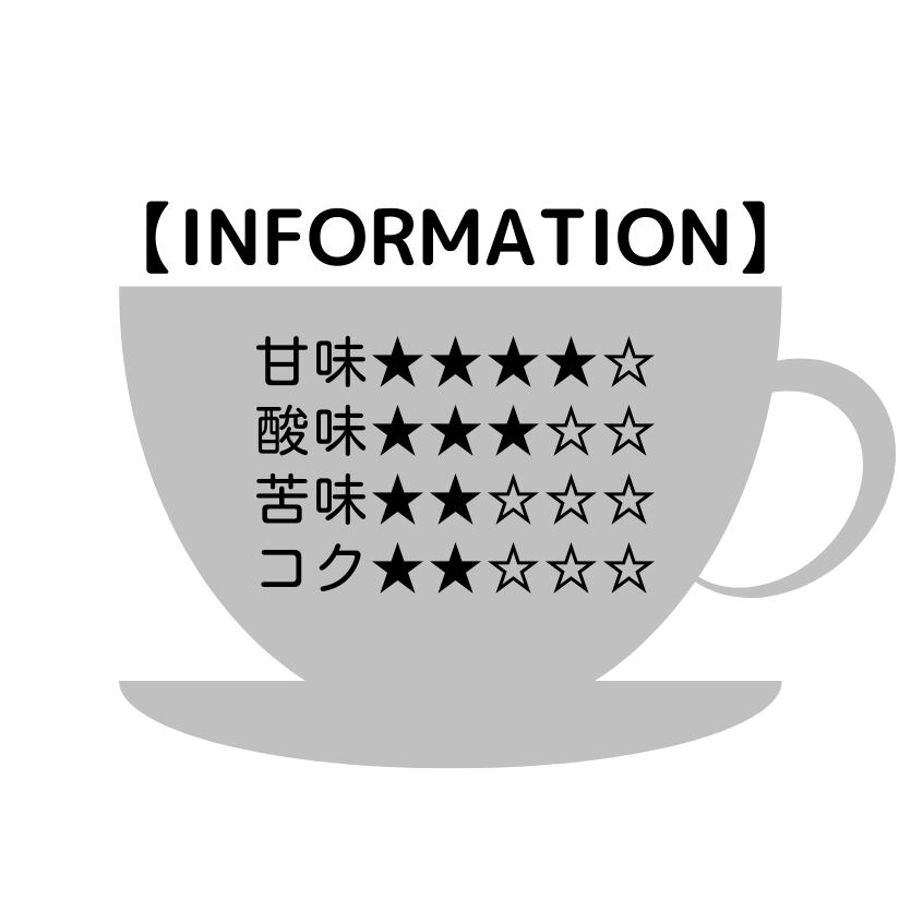 ダークチョコレートのような苦味から後に続く蜜のような甘さが特徴。後味には爽やかな酸味も感じられ、りんごをイメージさせるコーヒーです。